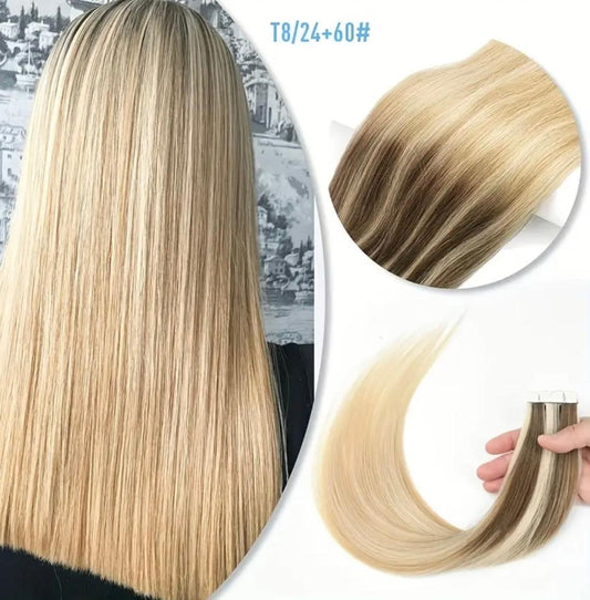 Straight Hair Mini Hair Tape Extensions Real Human Hair 22 Inches Seamless For Women Balayage 40pcs/Package - 100 gramas