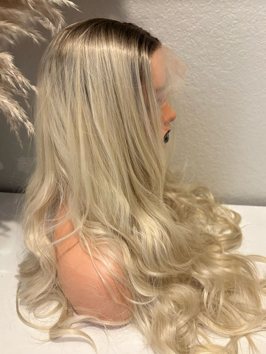 wig Silvia,Golden Wavy Ombre Lace Frontal